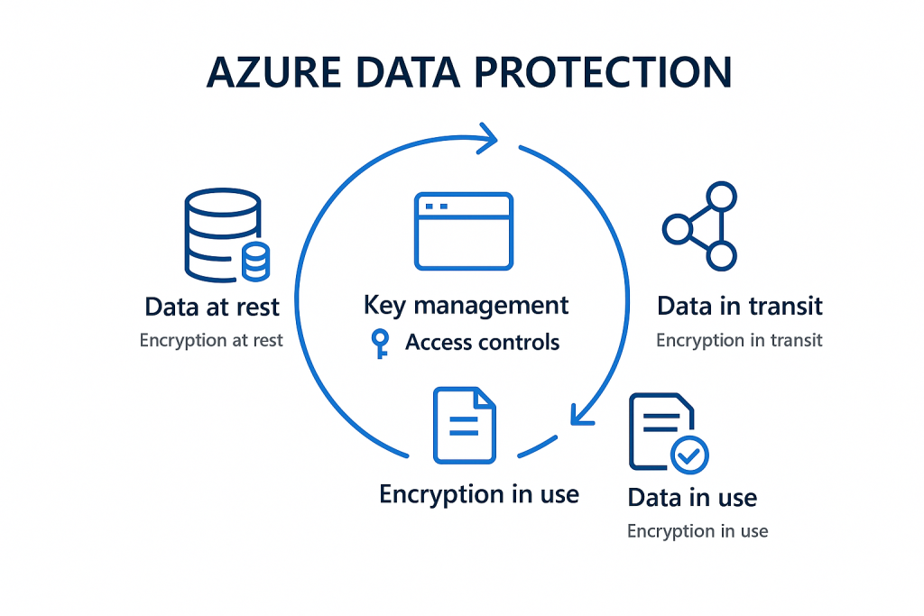 Azure provides multiple encryption mechanisms to protect data at rest, in transit, and increasingly, in use: