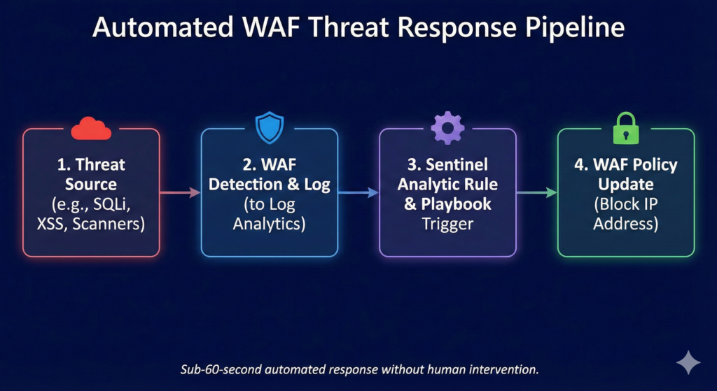 Automated Detection and Response with Sentinel – Step-by-step deployment guide for integrating Azure WAF with Microsoft Sentinel, including playbook configuration and automation rules.