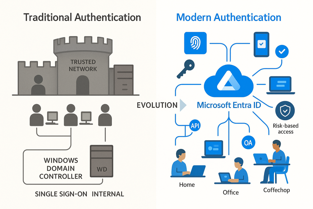 ![Visualization of the evolution from traditional to modern authentication showing the shift from simple password-based to multi-factor, risk-based approaches]