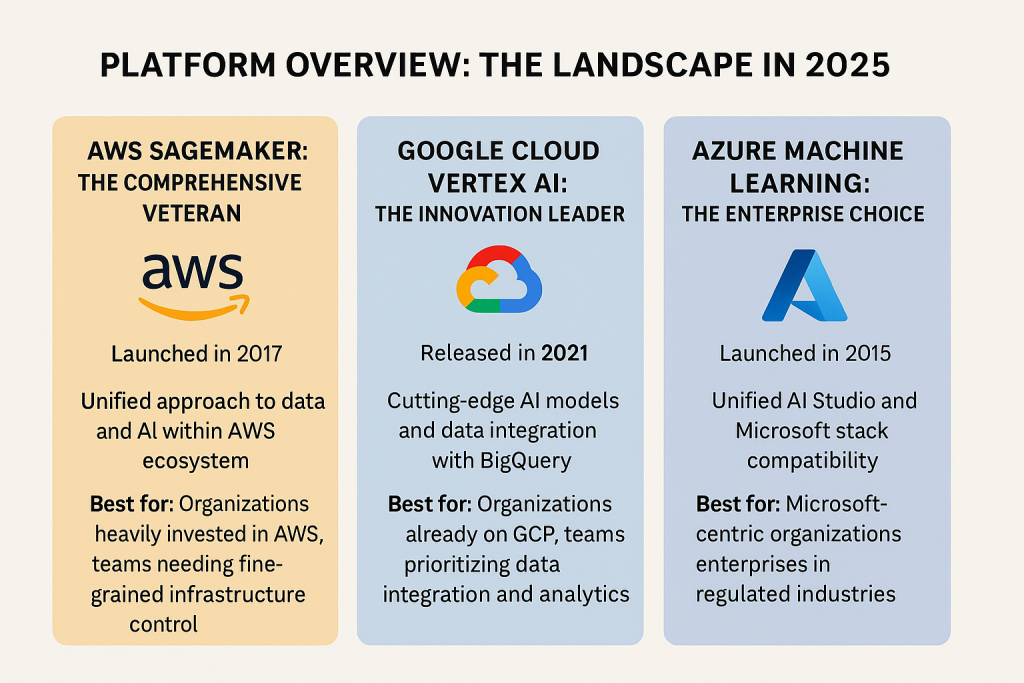 The machine learning landscape has evolved dramatically since AWS SageMaker first democratized cloud-based ML development in 2017. Fast-forward to 2025, and we’re living in an era where these platforms handle trillion-parameter models, generative AI workloads, and mission-critical enterprise applications. If you’re choosing between Google Cloud’s Vertex AI, AWS SageMaker, and Azure Machine Learning, you’re not just picking a tool—you’re making a strategic decision that will shape your organization’s AI capabilities for years to come.