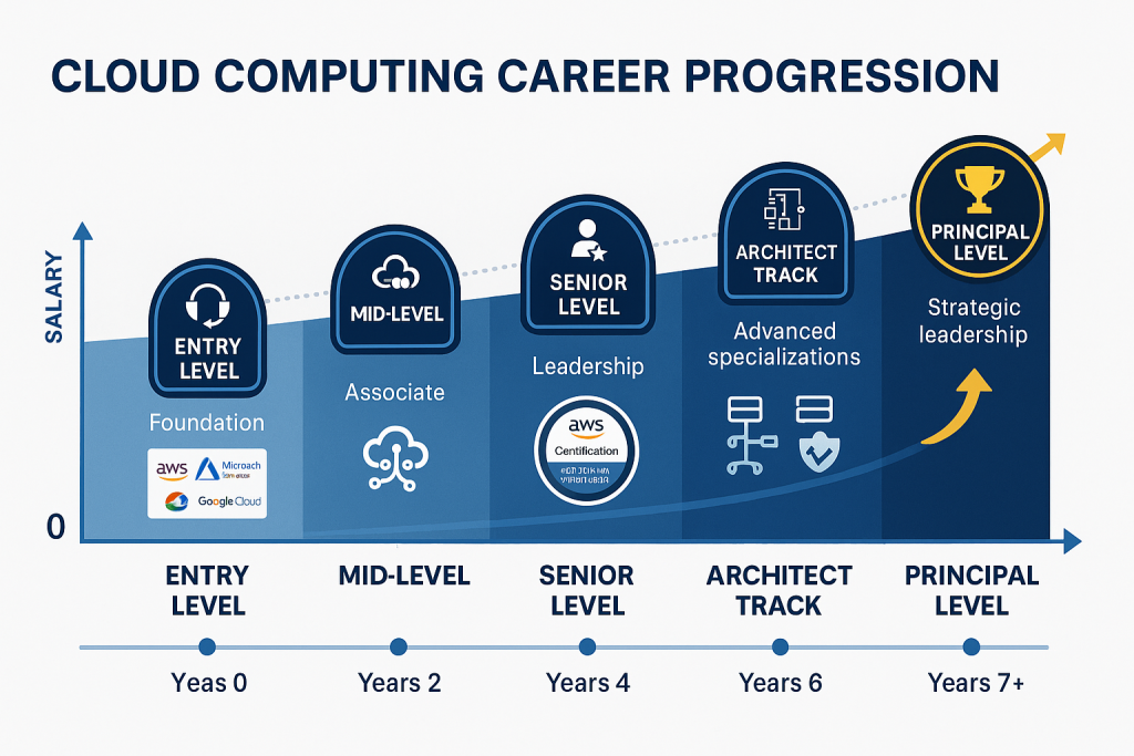 Recent market analysis reveals that professionals who strategically plan their cloud career progression see 150-200% salary increases within five to seven years. The journey from entry-level support to senior architecture roles follows well-established patterns, with specific skills, certifications, and experience requirements at each stage. This comprehensive guide maps out exactly how to navigate this lucrative career path.