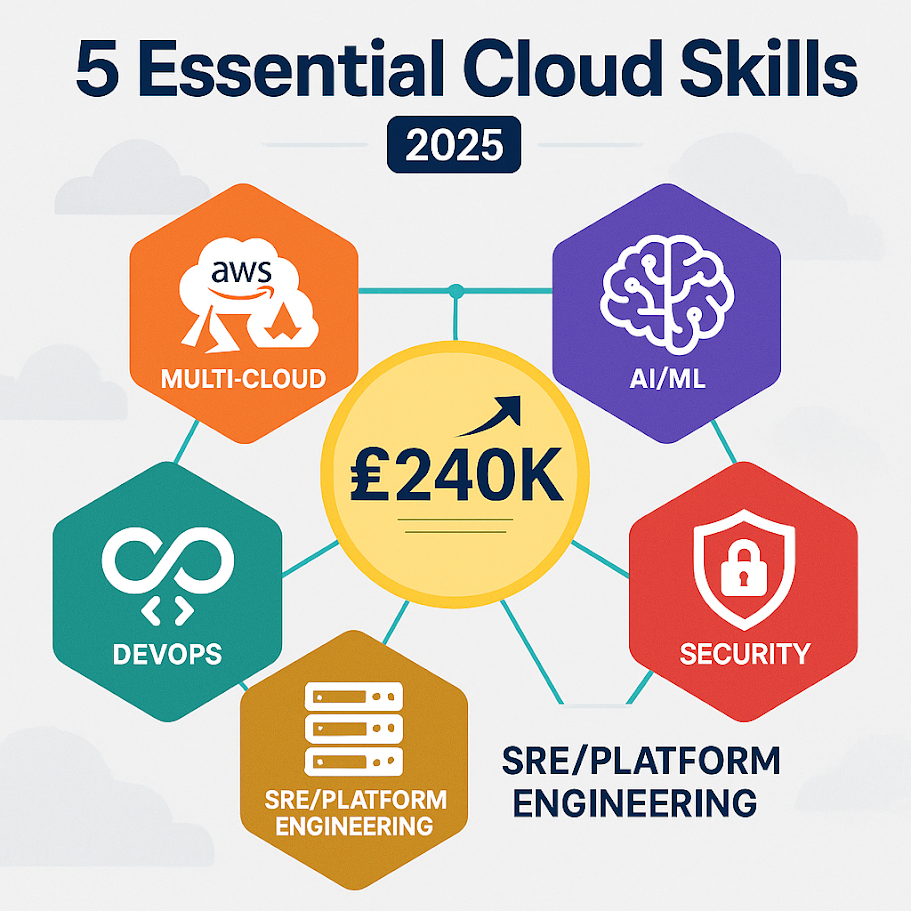 The cloud computing landscape has fundamentally transformed over the past year, creating both unprecedented opportunities and new challenges for practitioners at every level. With global cloud spending projected to reach £580 billion in 2025 and over 356,700 annual job openings expected across the sector, the question isn’t whether cloud skills remain valuable, it’s which specific competencies will drive career advancement in an increasingly competitive market.