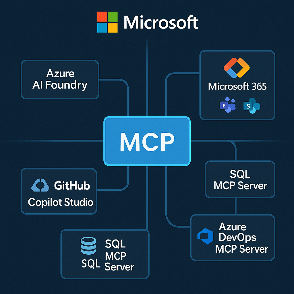 Perhaps the most significant development in MCP adoption comes from Microsoft’s comprehensive integration strategy. At Microsoft Build 2025, CEO Satya Nadella announced MCP as a first-class standard across Windows 11, GitHub, Copilot Studio, and Azure AI Foundry, positioning the protocol as central to Microsoft’s “open-by-design” AI ecosystem vision.