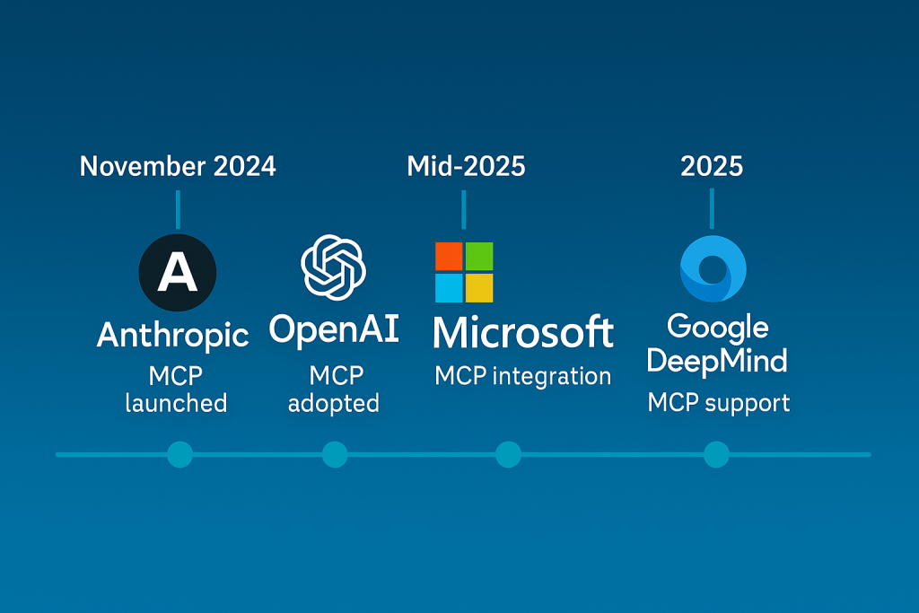 MCP represents a fundamental shift in how AI applications access external resources. Introduced by Anthropic in November 2024, the protocol has achieved remarkable industry adoption in an unusually short timeframe, with major players including Microsoft, OpenAI, and Google DeepMind integrating support across their platforms.