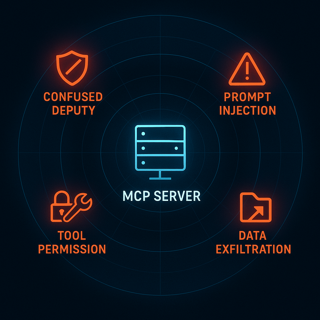 - Confused deputy problems where MCP servers execute actions beyond user permissions